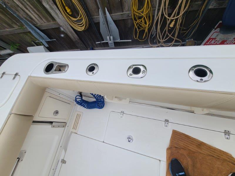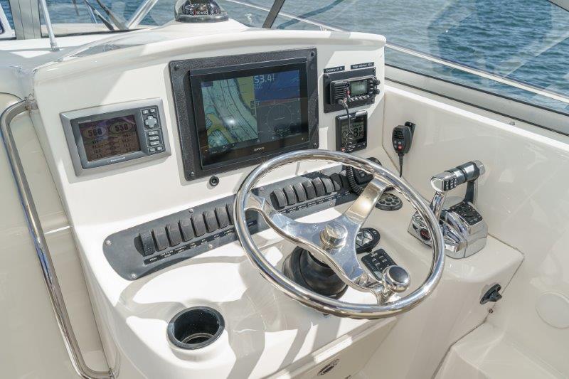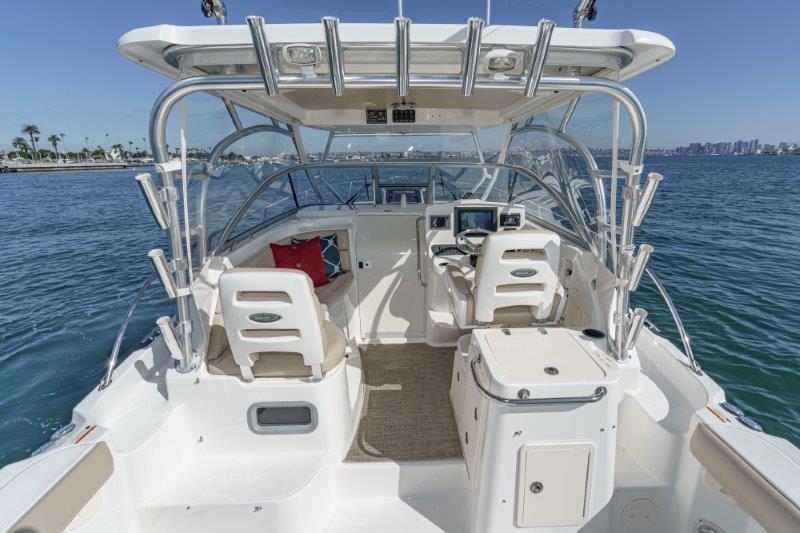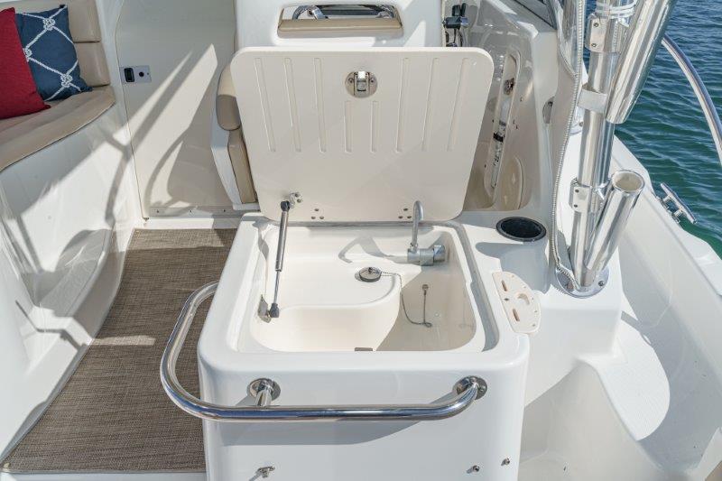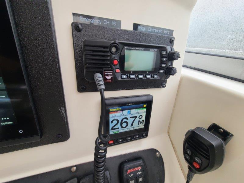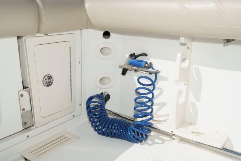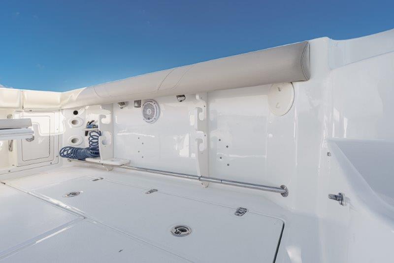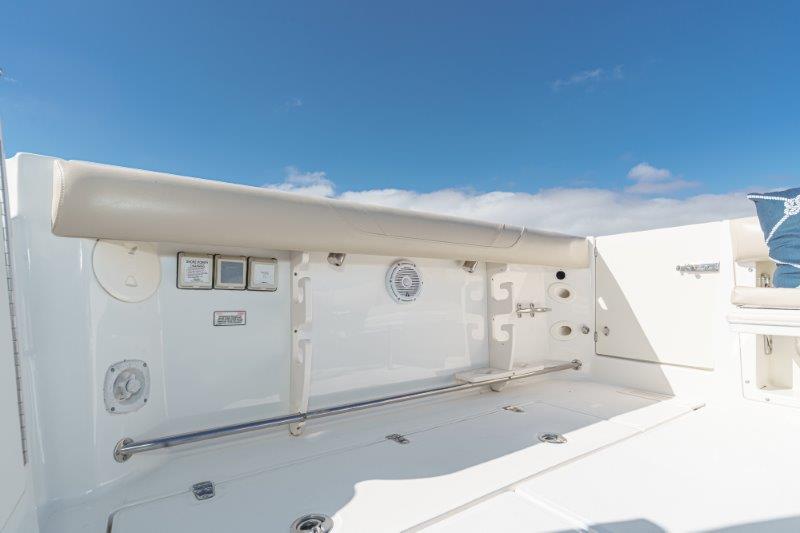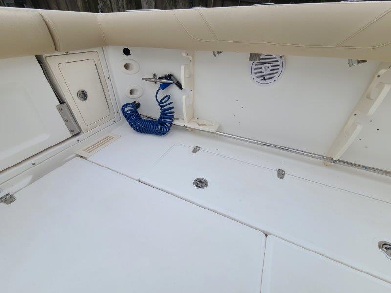 - Stereo – AM/FM, interior and exterior speakers (4), remote control at helm (Sat radio compatible)