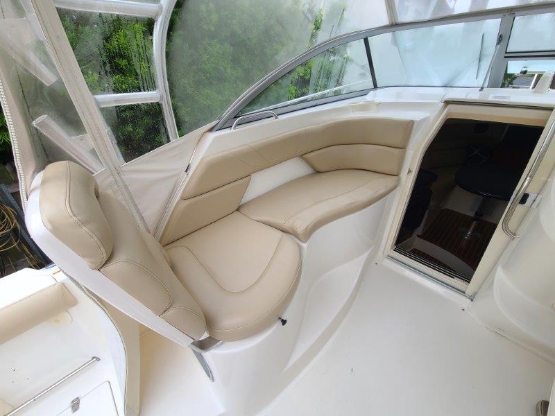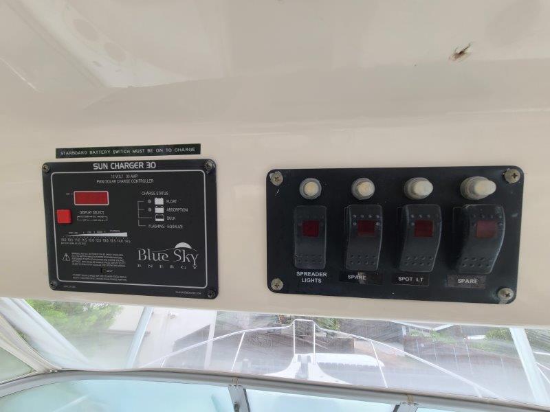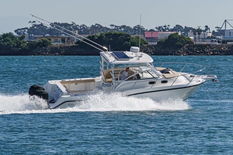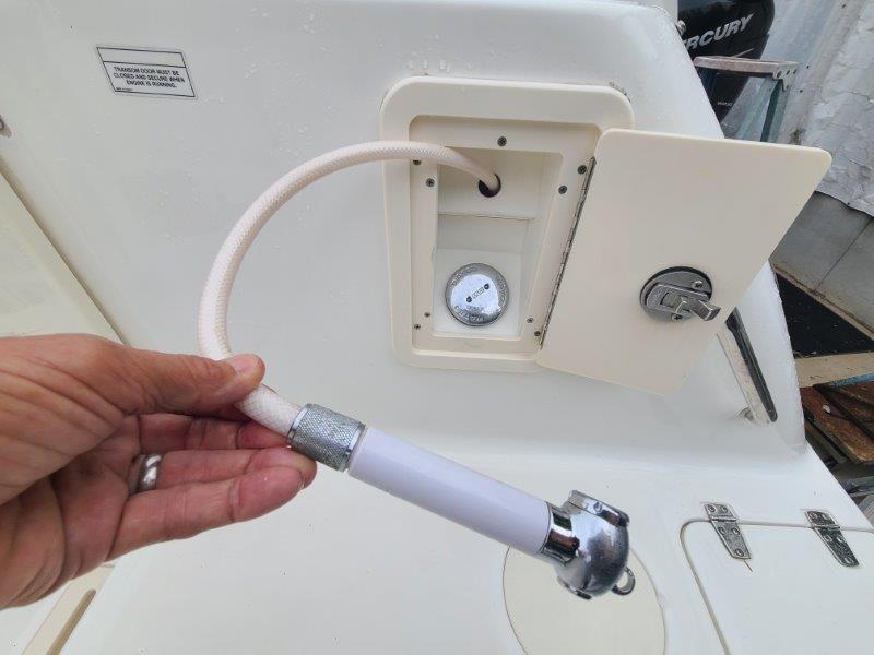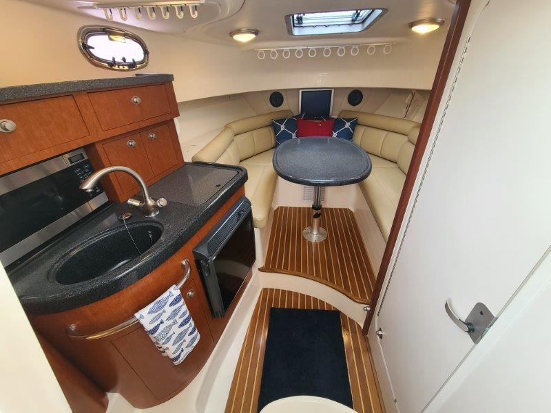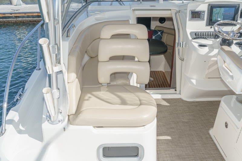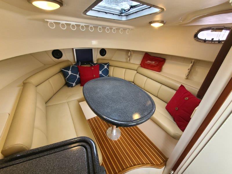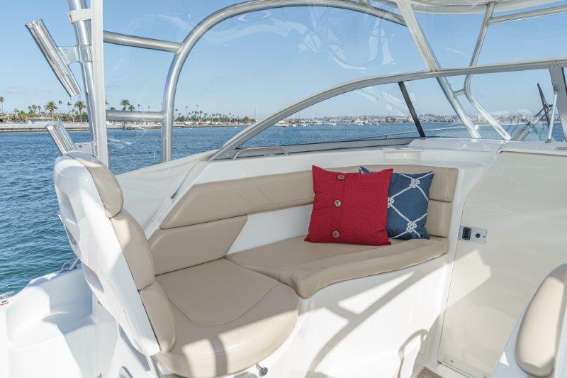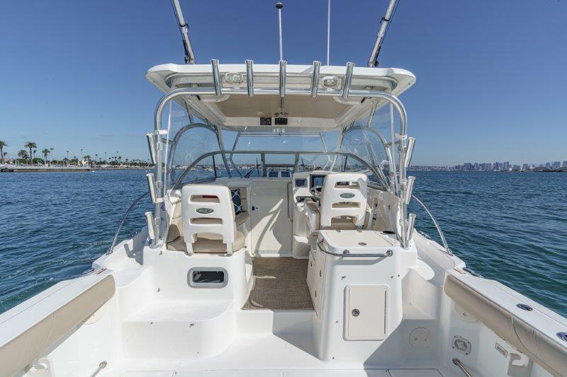 - Stereo – AM/FM, interior and exterior speakers (4), remote control at helm (Sat radio compatible)