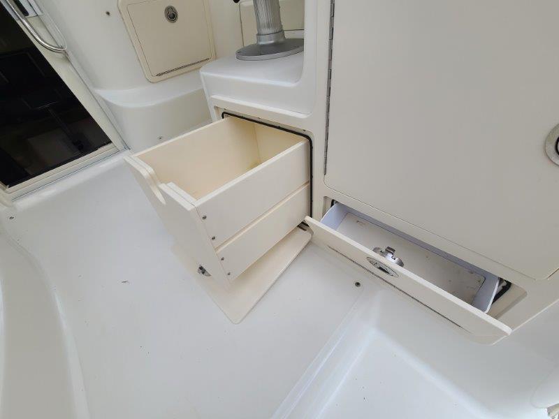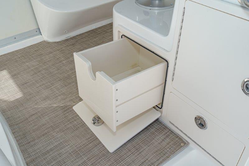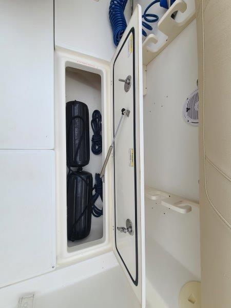 - Storage for safety gear – life jackets, flares, fire extinguisher