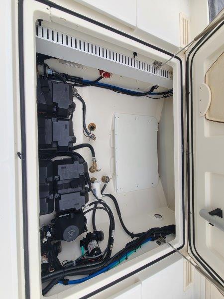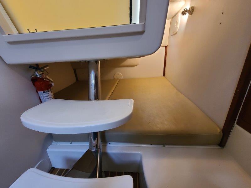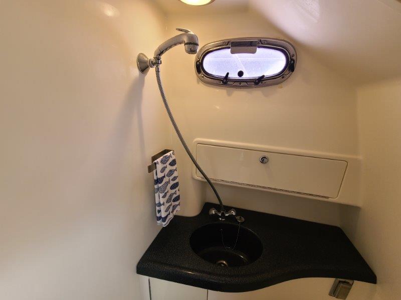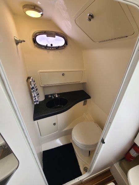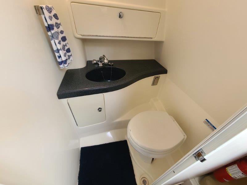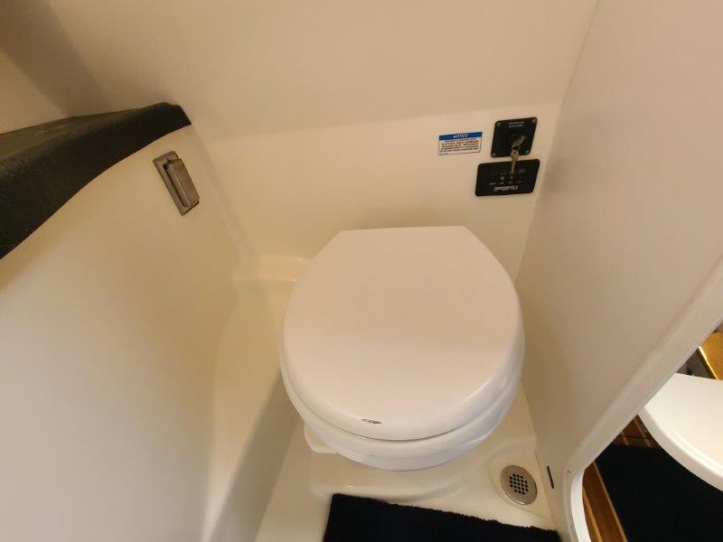 - VacuFlush™ head with holding tank (6.5 gallons), dockside pump-out and overboard discharge