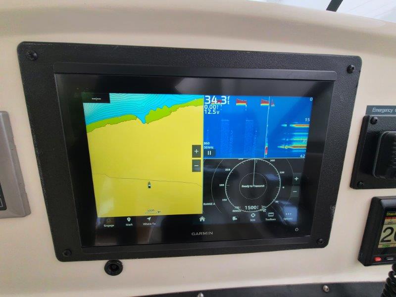 Large Garmin color touchscreen display w/ digital radar, GPS plotter and digital fish finder