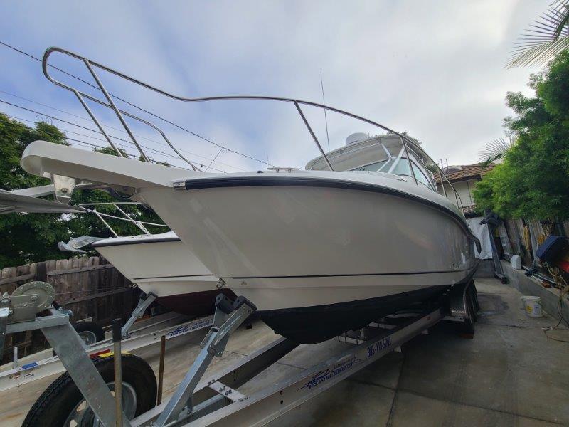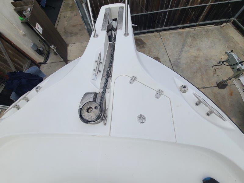 - 10″ stainless steel cleats – bow (2), spring line (2), stern with hawse pipes (2)