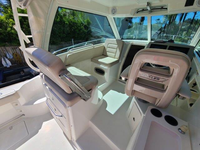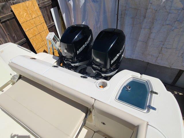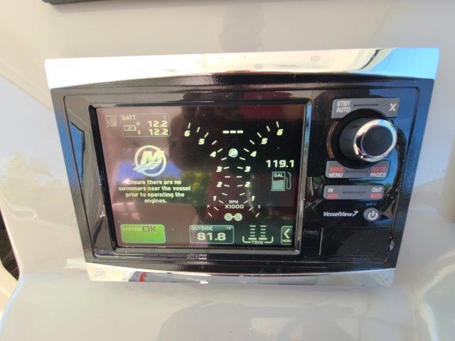 - Twin Mercury® Verado FourStroke engines with VesselView display, electronic shift controls and power steering.