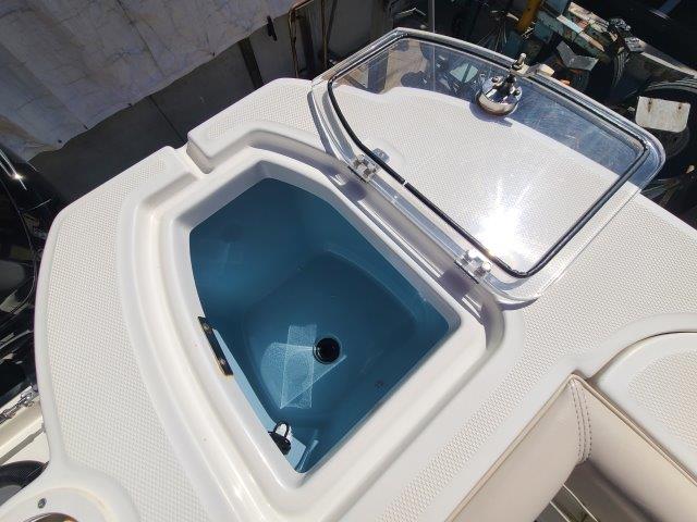 - Insulated livewell with light, raw water fill, blue interior and flow control.
