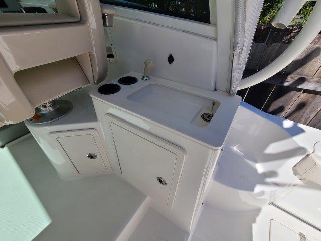 - Cockpit starboard side prep center with sink and storage.