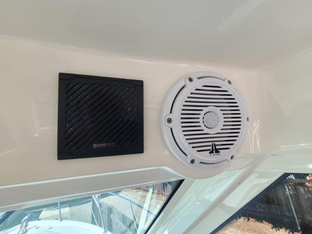 Stereo – Fusion® AM/FM, iPod controls, waterproof speakers (4), remote control at helm, AUX input, 400 watt stereo amp (Fusion Bluetooth ready)