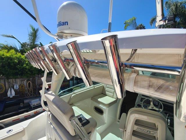 - Gunnel-mounted stainless steel rod holders (4).