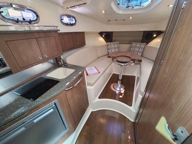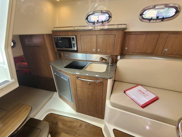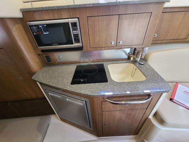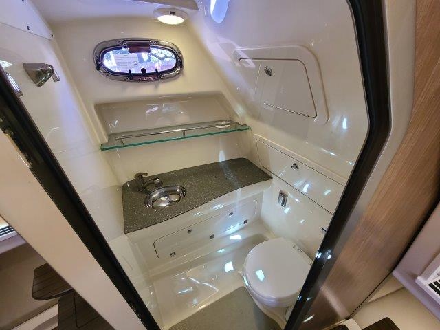 The 315 Conquest is a fishing and pleasure boat that has it all: enhanced utility, ultimate convenience and stylish comfort. The boat features a host of functional and aesthetic upgrades that are bound to impress both saltwater anglers and those who favor luxury cruising. A full front windshield and full side glass provide a clear, unobstructed view from the helm. A cockpit bait tank, second transom bait tank, bait prep station with sink, and dual in-deck fishboxes ensure the diehard angler has everything he needs to get on the fish. The boat’s cabin features new interior styling, including a skylight over the galley, and an expanded mid-berth offering improved headroom and flexibility for bringing on extra family members or friends. Master the offshore with the power and fishability of the 315 Conquest.